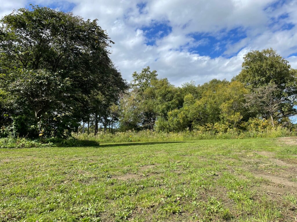 約20×20mの平坦な草地(一部土)のサイトを, 1グループでの貸し切りです.